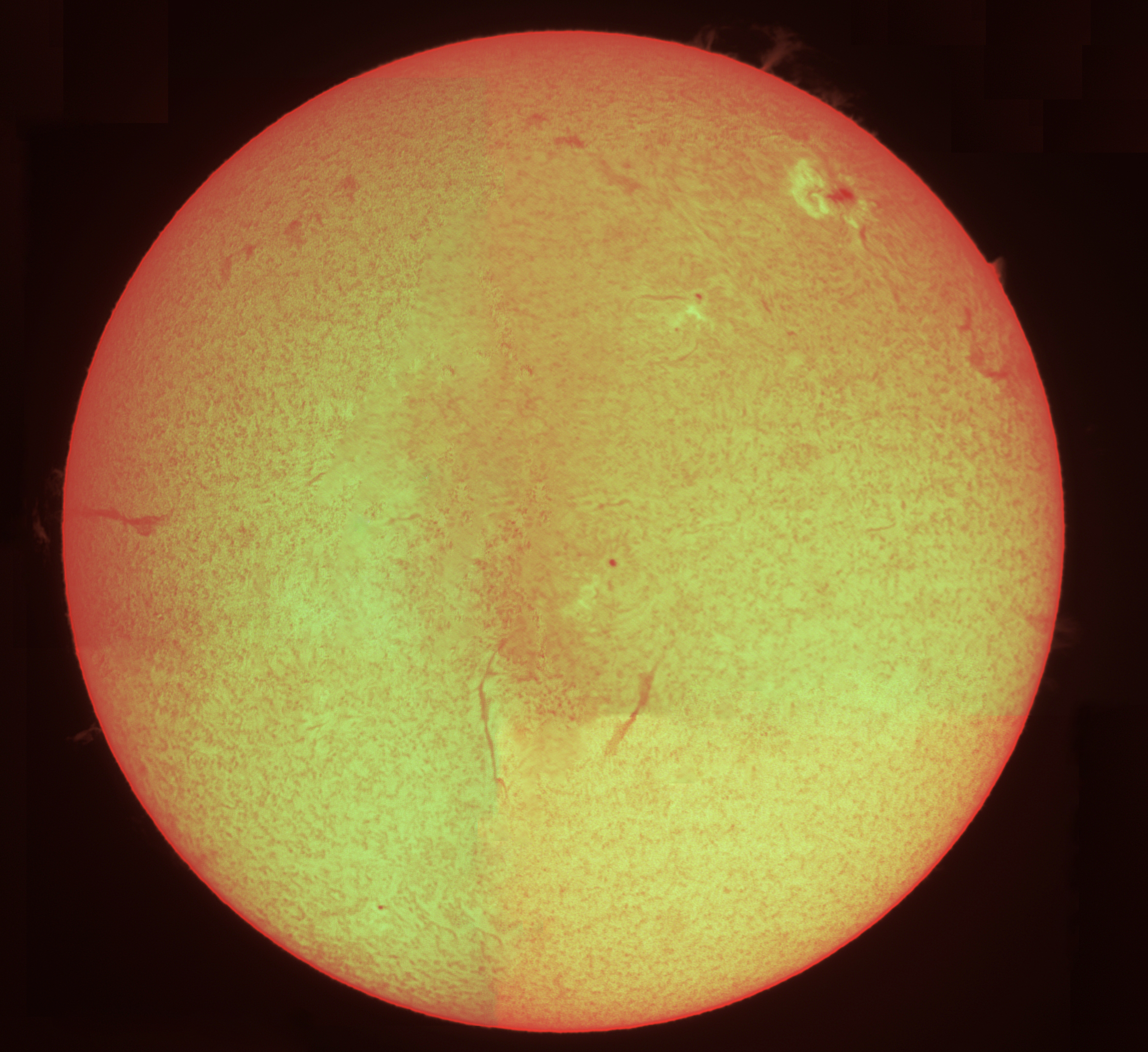 Single shot Canon 20Da DSLR at ISO 100 and 1/1600 sec exposure. parfocal on William Optics 132mm FLT refractor telescope, fitted with 'Baader' Solar Film filter